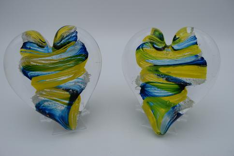 The Heart has always represented love. This glass heart memorial is made with the utmost care by one artist with 17 years of experience. It is double sided and comes with a free stand. 70 colours available and glow in the dark.